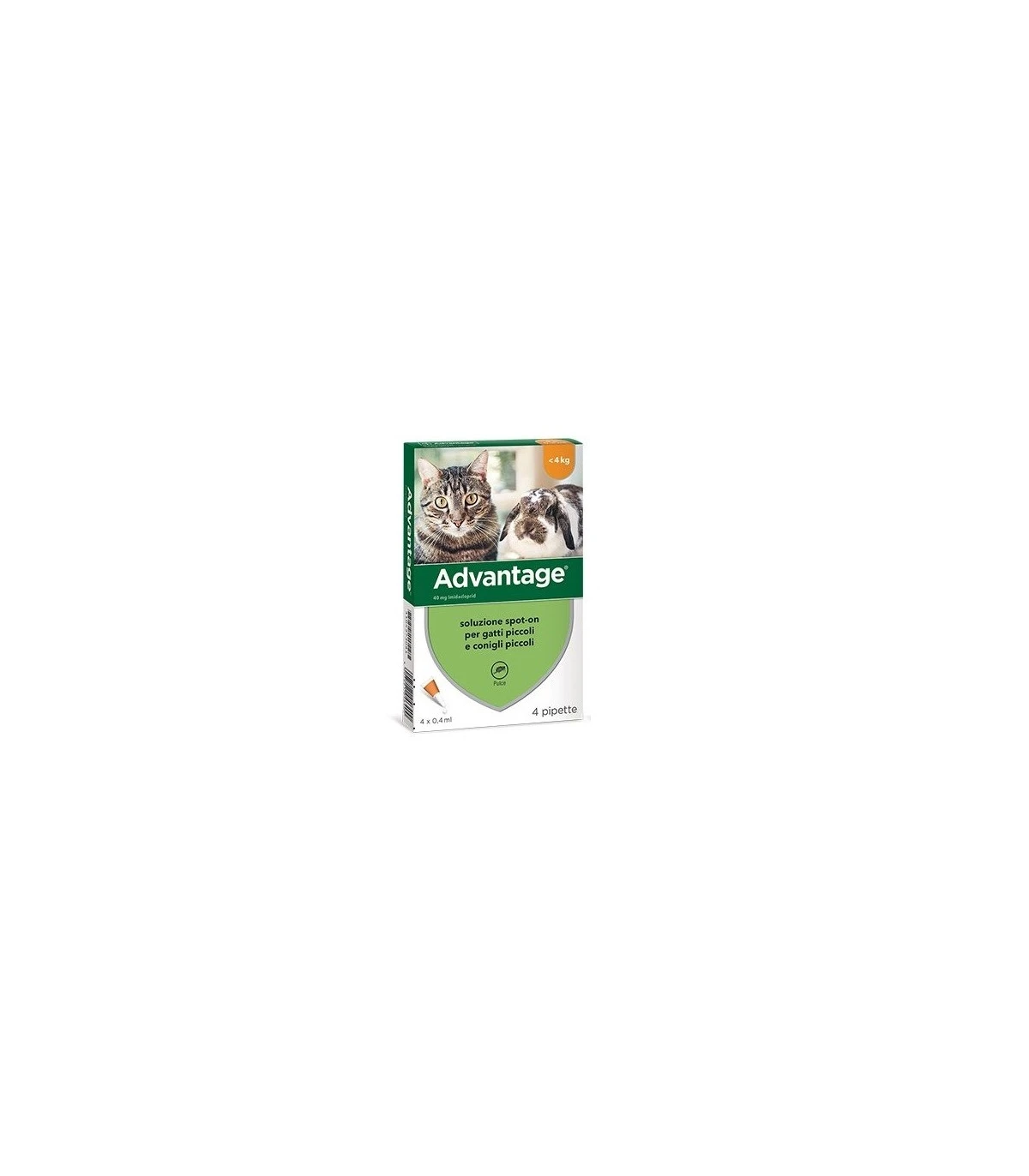 Il trattamento antipulci Advantage per gatti e conigli si applica direttamente sulla cute di gatto o coniglio e agisce entro 24 ore, eliminando in un solo giorno le pulci presenti sull’animale; un trattamento previene l’ulteriore infestazione da pulci per 3-4 settimane nei gatti e fino ad una settimana nei conigli. È una soluzione topica (spot-on) facile da applicare che uccide le pulci del gatto e del coniglio al contatto, prima che vengano punti. Advantage è il tuo alleato nella lotta contro le pulci.