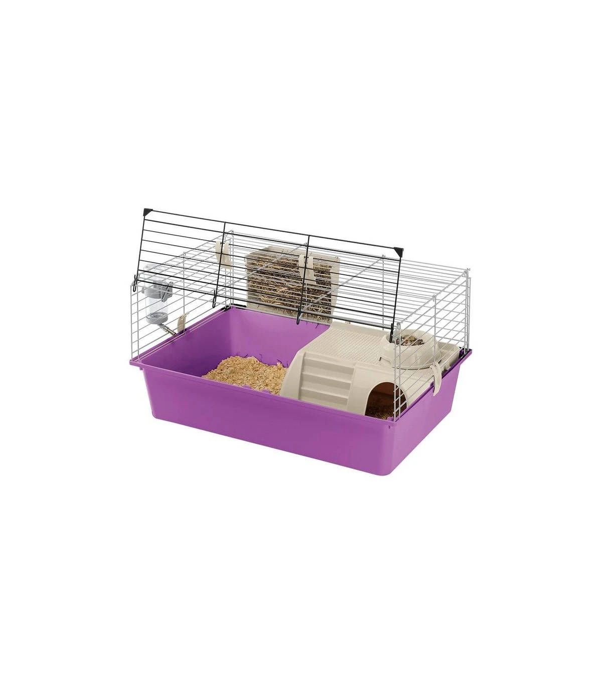 Cavie 15 è una gabbia per porcellini d’India con sistema di apertura e chiusura di recente rivisitazione, garanzia di maggiore sicurezza per i piccoli ospiti. L’habitat ha una struttura tradizionale con fondo in plastica e struttura in rete metallica verniciata. Lo sportello frontale è completamente apribile per facilitare le operazioni di pulizia. All’interno, troverete accessori come beverino, mangiatoia per il fieno, ciotola per il cibo e casetta in plastica per il riposo del roditore.