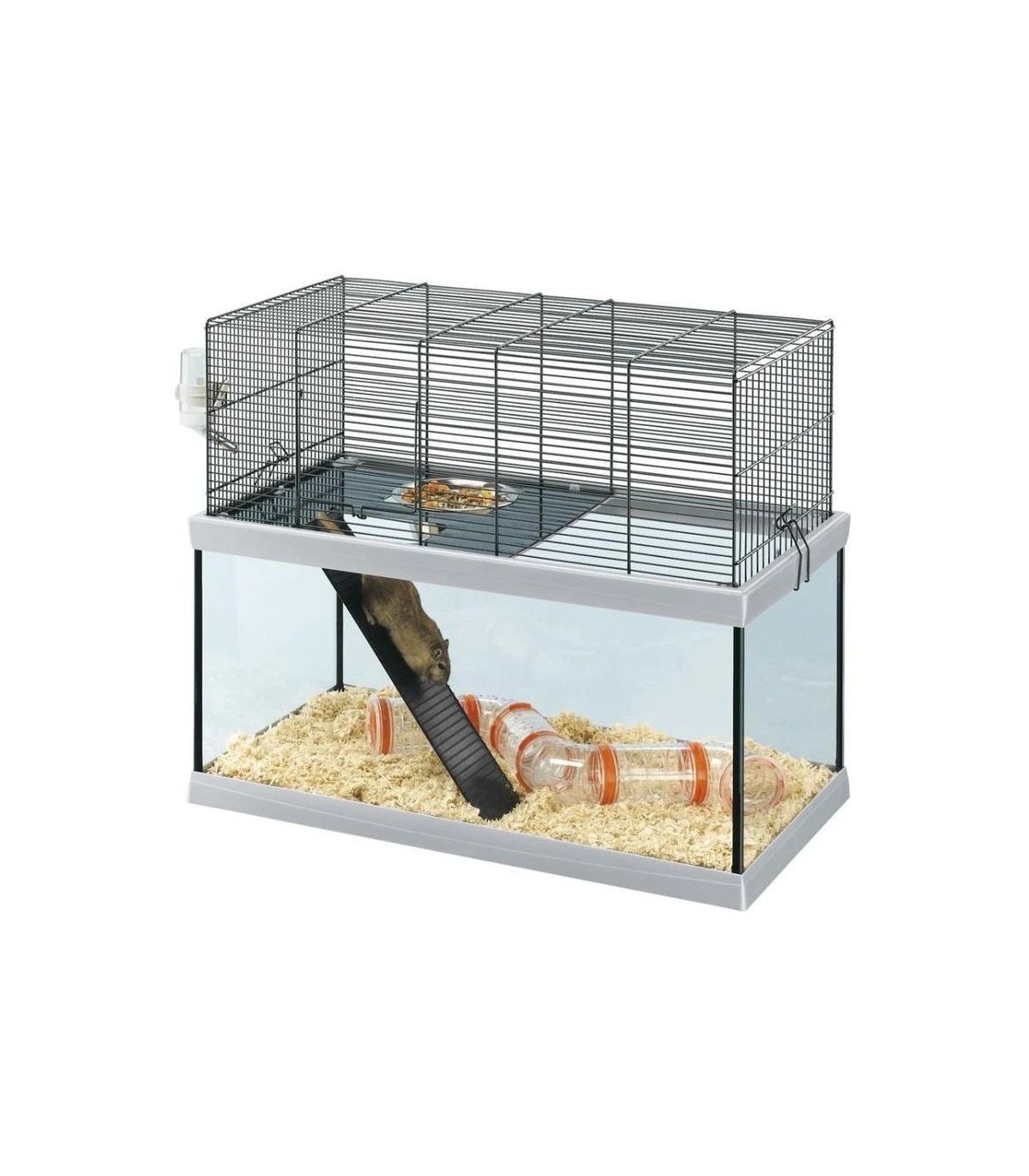 Gabry è una gabbia per gerbilli in vetro completata da una struttura in rete metallica munita di sportellini apribili dall’esterno. La particolare profondità della vasca permette all’animale di scavare e nascondersi nella segatura; la parete trasparente in vetro consente al tempo stesso grande visibilità dell’animale ospitato all’interno. Gabry è disponibile in tre diverse misure che potrete scegliere in base alle esigenze dell’animale. Tutti gli habitat hanno un piano rialzato in metallo con scaletta e ciotola in acciaio, oltre a un indispensabile beverino. I modelli più grandi Gabry 60 e 80 sono inoltre completi di tubi in plastica trasparente per far giocare il piccolo amico.