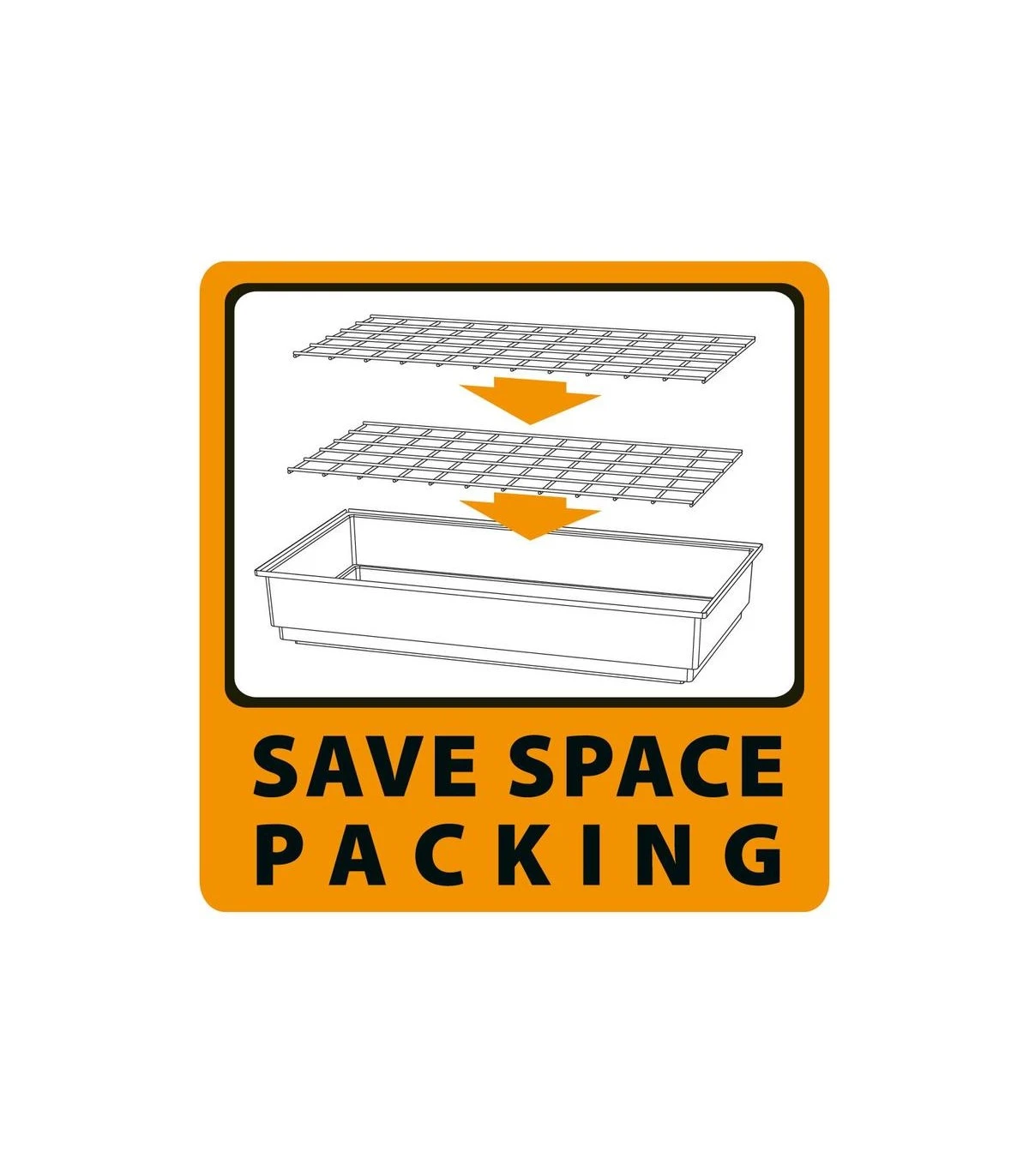 - Rete e fondo in plastica uniti lateralmente tramite linguette a gancio