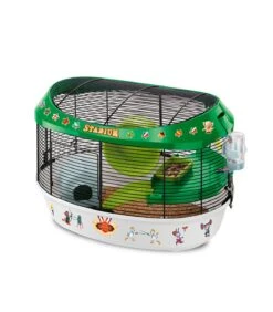 Lunghezza articolo 49.5cm Profondità articolo 34cm Altezza articolo 33cm Stadium è la gabbia ideale per tutti i criceti e i piccoli roditori che amano tenersi in forma. Corredata di colorati adesivi che potrete utilizzare per personalizzarla secondo il vostro gusto, è completa di utili accessori quali nido, ruota indispensabile per l’esercizio fisico, mangiatoia, beverino, pianetto e scaletta.