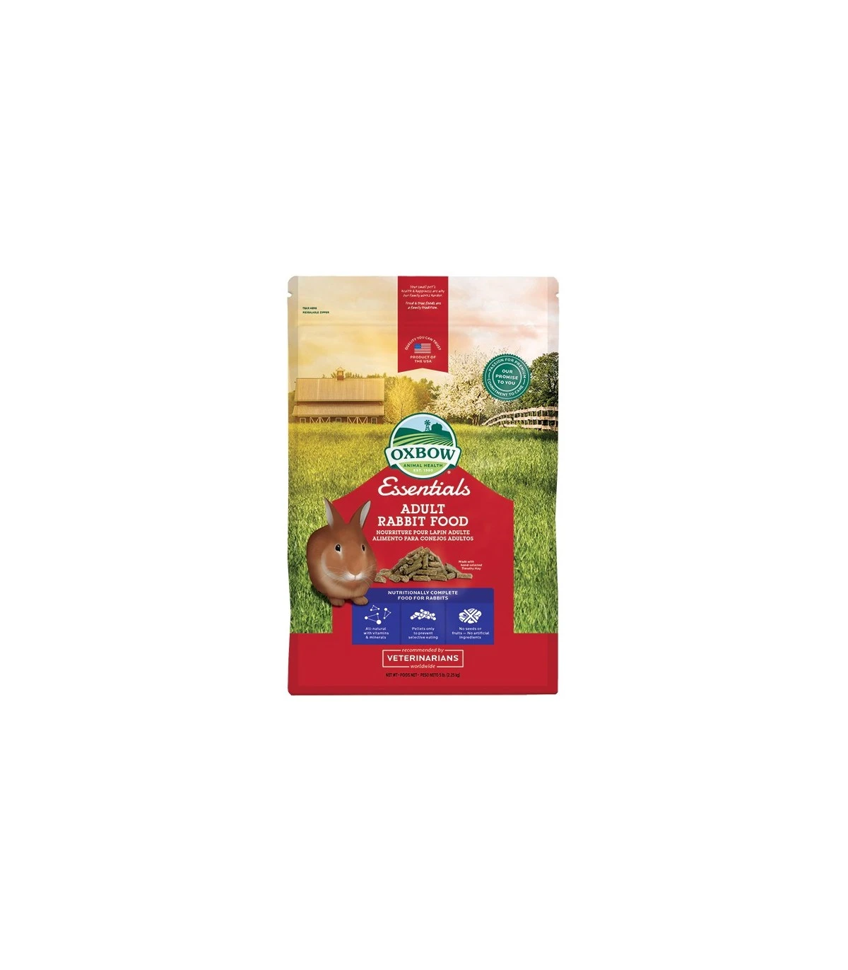 Essential Adult Rabbit Food non è adatto per conigli giovani, femmine in gestazione o che allattano. Per conigli inferiori ad un anno di età il magime specifico formulato dalla Oxbow Animai Health è TEssential Young Rabbit Food. Queste istruzioni hanno solo valore di guida. I fabbisogni potrebbero variare da coniglio a coniglio. Essential Adult Rabbit Food è un mangime completo per conigli adulti, si consiglia comunque di aggiungere alla dieta vegetali freschi non bagnati e non freddi e soprattutto fieno d’erba a volontà tra i seguenti fieni Oxbow: Western Timothy hay, Oat hay, Botanical Hay, Organic Meadow Hay, Orchard grass hay. Acqua fresca e pulita deve sempre essere lasciata a disposizione del vostro coniglio.