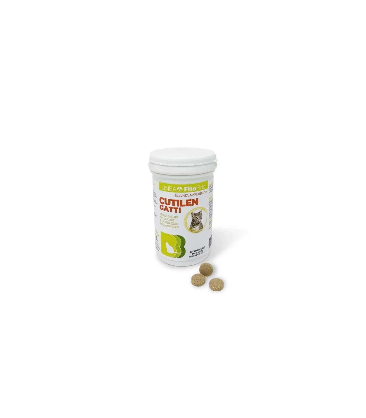 CUTILEN GATTI è specificatamente formulato per integrare l’alimentazione giornaliera del gattino e del gatto adulto. CUTILEN GATTI contiene vitamine, oligoelementi ed amminoacidi specifici per favorire il mantenimento in buona salute della cute e del mantello. CUTILEN GATTI è inoltre arricchito con lievito di birra, fonte naturale di vitamine ed amminoacidi ad alto valore biologico. CUTILEN GATTI può essere impiegato in qualsiasi età e condizione fisica e risulta particolarmente utile in caso di: