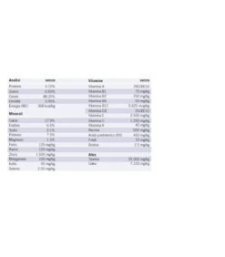 Secco: minerali, vitamine, olio e grassi (olio di soia).
